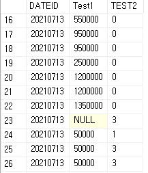 위와 같은 쿼리를 실행 할 경우 NULL 값으로 인하여 Warning 발생!