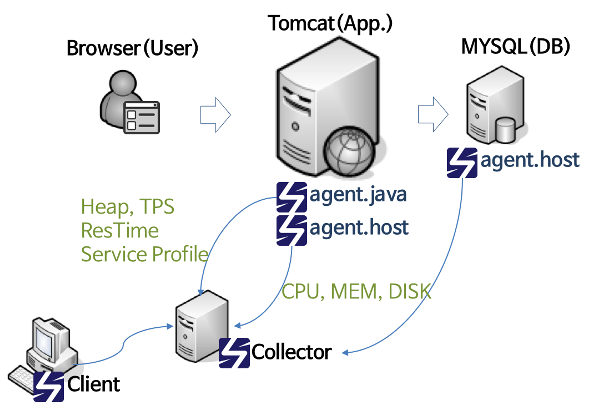 - HostAgent : 단독으로 실행되며 서버 OS 혹은 DB 등에서 자료를 모아 수집기(Collector)에 전달한다.