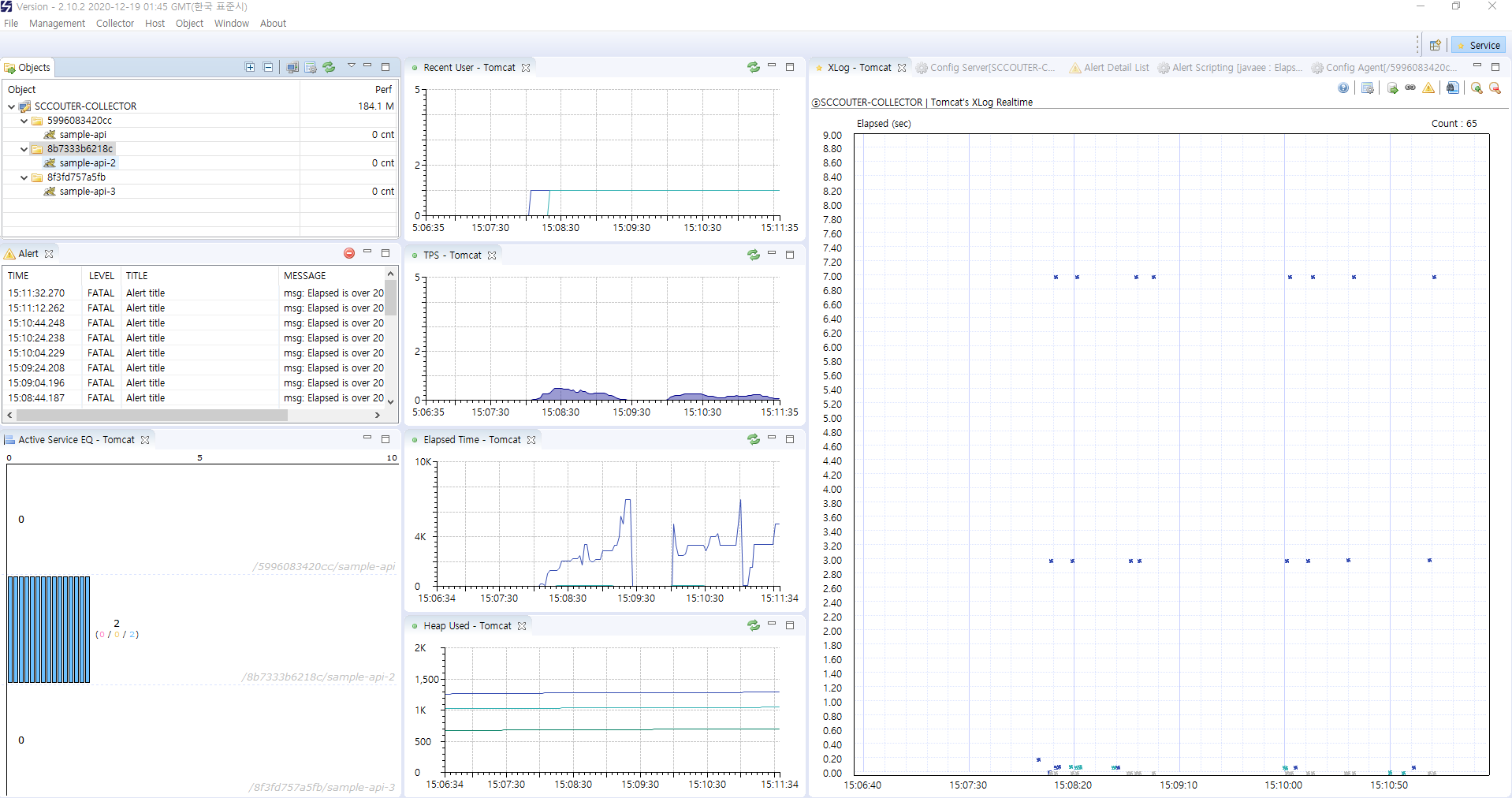 - 모니터링 대상 서비스, Scouter Agent 3개