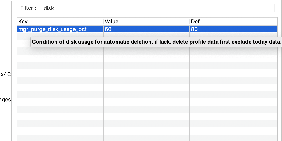 • 스카우터는 OS의 디스크 사용량이 특정 비율을 넘게 된다면 스카우터의 오래된 데이터부터 삭제하도록 설정 할 수 있다.